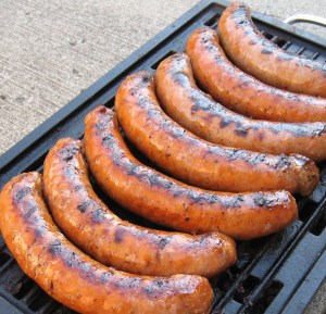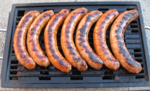 Winter’s onset traditionally signifies the end of my barbecue season until spring. But, I must say there was a time when that wasn’t the case and I used to grill all year round. Now, I clean my Weber, and store it, protecting it from unnecessary exposure to Canada’s harsh winter. And frankly, I’m not keen on indoor grilling either, as the results aren’t remotely close to the authentic method … not to mention the smokiness, and greasiness that invariably fills the air. This year, I thought I would remedy that by constructing a hibachi made with an old roasting pan, and the cast iron grate from my electric indoor DeLonghi grill. To my amazement the fit was perfect, well almost. These are hot Italian sausages that I grilled in the morning for dinner’s preparation of my baked sausage, spigazzouli, onions, yellow peppers, cremini mushrooms, jumbo pitted olives, sliver sliced garlic, and my homemade fresh oregano, fresh rosemary tomato sauce, topped with freshly grated Romano Lupa. Of course, this is my recipe … what else would you expect? Anyways, here’s a few pics, along with a pic of the pasta I used … the exact brand and packaging too!!