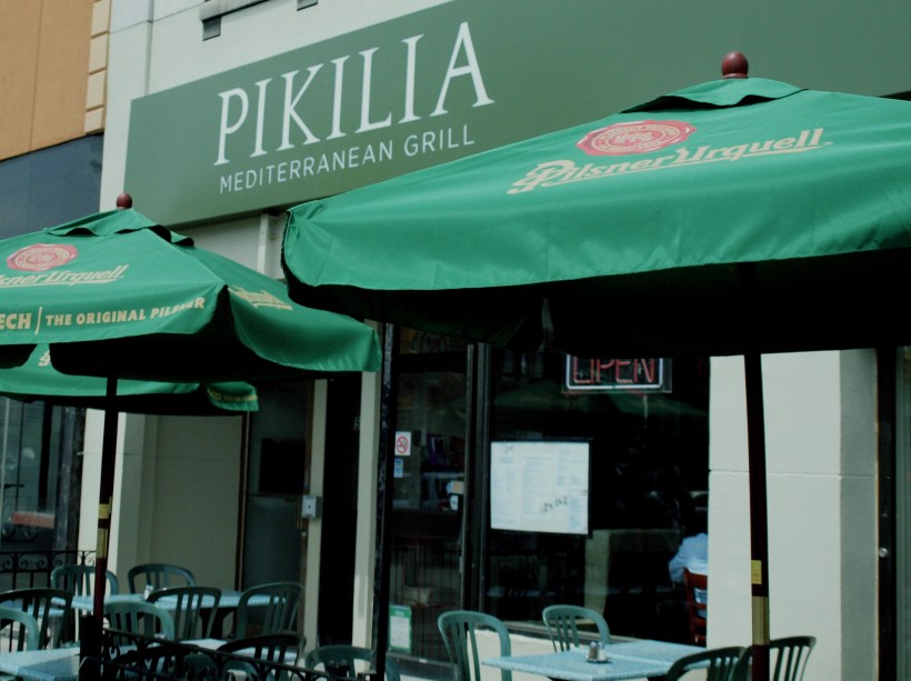 Went here about a week ago! It’s the old Mr. Greek restaurant on the Danforth (at Carlaw). What a great place the original was. I mean that was the fucking place!! … I remember going there at least twice a week, late night partying back in the early ’90s. The new place is good too, but now in the afternoon, for me at least anyways!! Hey check out the coolest motherfucking patio umbrellas of all time!! Pilsner Urquell … woohoo!!