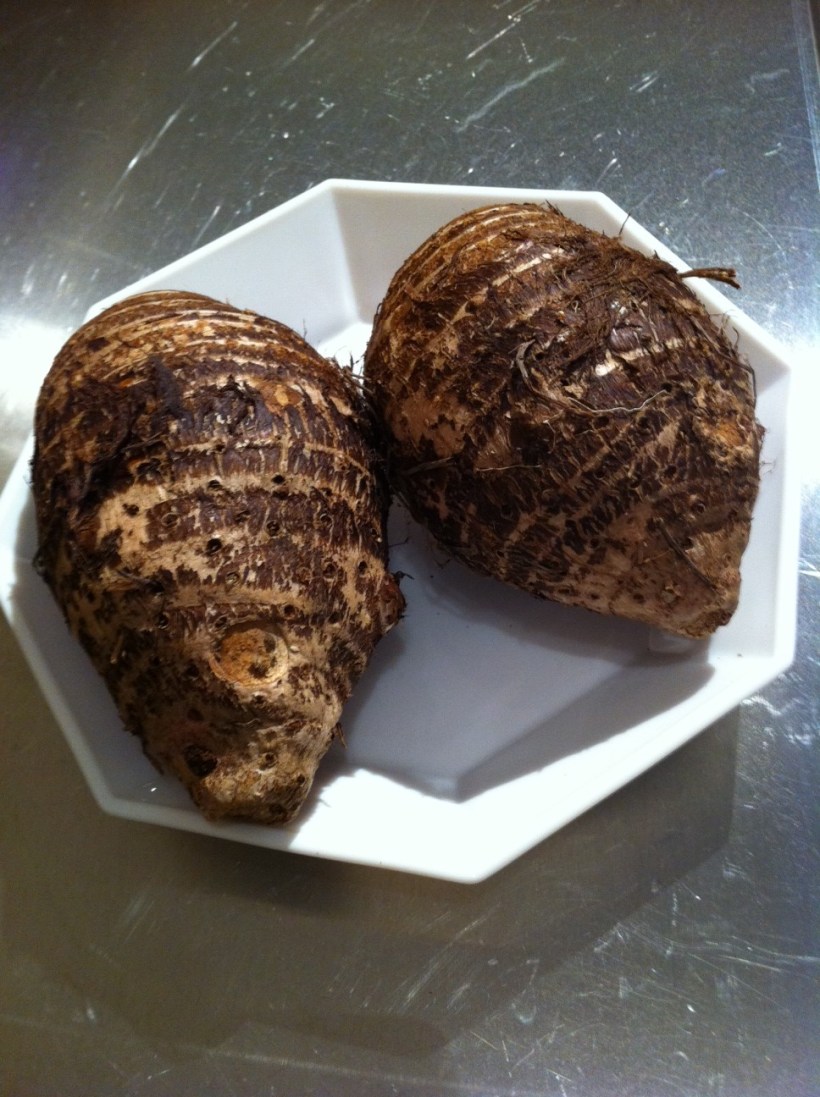 With a twist!! The cold of winter partners perfectly with hot, robust, earthy stews. Served with crunchy bread, and different varieties of cheeses, when the thermometer plunges near the -20º mark, for a hearty dinner … nothing beats it!! I’ve been making stews for years now, using my trusty Rival™ crock-pot, mine is an old school model, the deep well, round shape type, unlike the newer versions which are oval, and more shallow. Plus they now come with digital readouts, programmable timers, etc.. Mine doesn’t have anything but a single knob with three choices: off, #1, and #2 … that’s fucking it. Basically my stews have remained similar throughout the years, the two main ingredients being stewing beef and potatoes. Oh, before I proceed, a note about stewing beef. It is essential, crucial in fact to season the meat with salt and pepper (optional: floured too) and sear in an oiled heavy bottom skillet (not overcrowding the pieces, so they don’t steam), to the point of blackening … deep dark brown at the very least. Then deglazing the pan with red wine, not wasting these precious bits of rich flavour. Not taking this important step, just dumping the beef straight from the package into the crock-pot to cook is blasphemous!! I also put carrots, Italian flavoured stewing tomatoes, a can of tomato soup, beef broth as needed, and another key ingredient … Del Monte seasoned french style green beans. This has been the recipe, very rustic, very simple, very good. Early in the morning before I leave, I dump all the ingredients into the pot, turn the sucker on, and when I come home 8-10 hours later, my dinner awaits. For the past couple of years, I’ve been adding turnips in addition to the potatoes, adding another dimension to the stew. A few days ago, while shopping for my ingredients, I came across this vegetable … a root vegetable like the potatoes and turnips, I’ve never seen before, hadn’t heard of it either … am pretty sure you haven’t either!! It is called Malanga … I picked it up, and was very intrigued, and I guess feeling somewhat adventurous, bought some … trying to expand and explore my culinary pursuits, not that I’ve done all that much exploring, lol!! Here’s a picture I took … verdict to follow!!