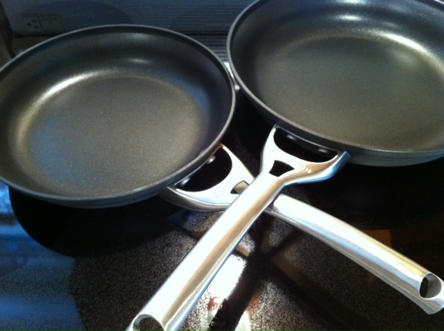 It must be a fucking disease, I can’t help myself … I love beautiful, high-quality cookware!! I went to Williams-Sonoma to browse … only (I swear, lol), but instead ended up walking out with these two gorgeous pans from Calphalon … treating myself in the process. The smaller one (10 inch) will be used as my new omelette pan, and the 12 inch as my everyday sauté pan. Hey, I did show some restraint … steered clear of the Le Creuset and Staub cast iron pots … steered clear of a much, much heftier bill too, lol!!
