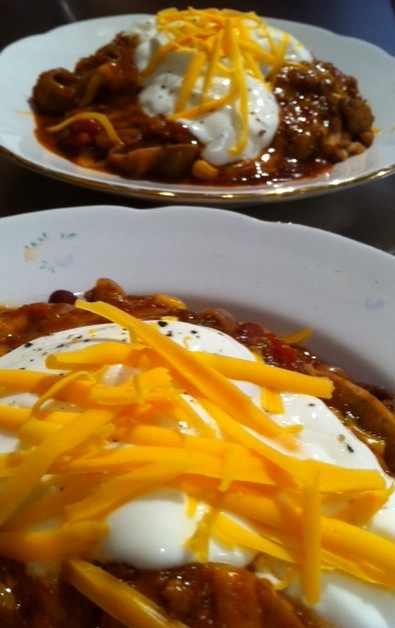 … and since ‘The Dirty (starving) Dozen’ never did show, all this was for Tiffany K. and yours truly, plus leftovers … and what they say about chili being better the next day? Yeah, fuck yeah!!