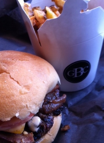 6oz GBC 100% beef burger, lettuce, tomatoes, sautéed