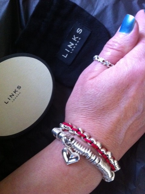 Tiffany K. and I went shopping at Holt Renfrew today … she eagerly and excitedly had her heart set on getting a LINKS OF LONDON ‘Friendship’ bracelet to go along with her ‘Sweetie’ bracelet!! She loves their stuff, must agree it’s extremely eye-catching, very striking!! Back home, here she is holding the beautifully wrapped and packaged box with the bracelet, wearing her ‘Sweetie’ (with a LINKS charm) … and her Tiffany & Co. (Paloma Picasso Love & Kisses ring) ring on her thumb!!