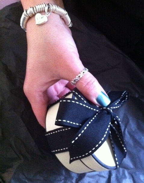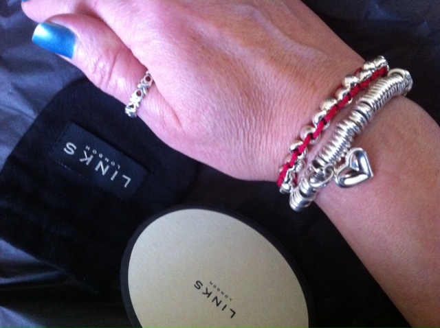 Tiffany K. and I went shopping at Holt Renfrew today … she eagerly and excitedly had her heart set on getting a LINKS OF LONDON ‘Friendship’ bracelet to go along with her ‘Sweetie’ bracelet!! She loves their stuff, must agree it’s extremely eye-catching, very striking!! Back home, here she is holding the beautifully wrapped and packaged box with the bracelet, wearing her ‘Sweetie’ (with a LINKS charm) … and her Tiffany & Co. (Paloma Picasso Love & Kisses ring) ring on her thumb!!