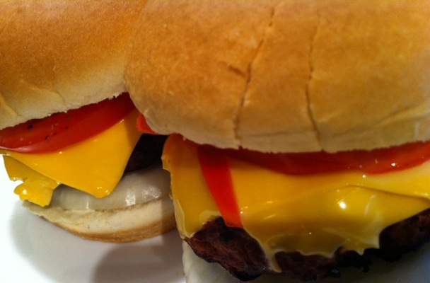 Every year, in my quest for the perfect burger, I invariably revert back to simpler times, longing for them … once (or twice) a year I try to go back to recapture these great times and memories by making my old school burgers … AND thankfully was reminded of this by my good friend’s picture of her delicious homemade burgers. These are 125 g (roughly 4 1/2 ounces, perfect size btw) … much smaller than my usual big’uns … and that’s the whole point, K(-ing)ISS … nuthin’ fancy!! Added half a grated red onion, a few squirts of mustard and bbq sauce, and tossed in about 1/4 cup of panko bread crumbs, only ’cause I had them … see that’s the thing, you can be somewhat flexible with the recipe … although I recommend grating the onion as opposed to finely chopping it … this little secret provides a couple of benefits: the added liquid (onion juice) created by grating helps bind the burger, and when making smaller burgers, chopped onions can create spaces in the meat, facilitating the burgers pulling apart and separating slightly at times. You don’t want that, you wanna tight patty (ok, minds outta the gutter y’all …said patty … LOL)!! Kraft single slices (the thin ones too, fewer calories … see, always thinking, lol) only allowed on this iteration, only basic condiments too … and of course … ONLY cute ‘n ‘lil Wonder hamburger buns permitted to this party, LOL!! Enjoy the pics!! 🙂
