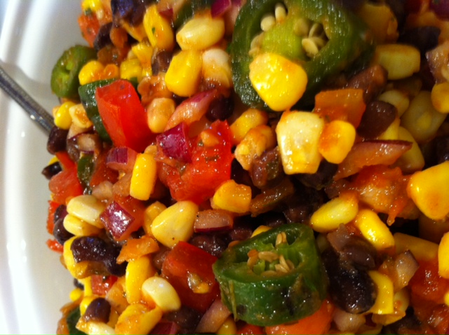 Black bean & corn salsa redux … with the black beans, lol!! Went heavy on the fire-roasted jalapénos, being the culinary perfectionist, scraped off the skin with my paring knife (whaddy’all expect, lol) and NO (heaven forbid, lol) I didn’t remove the membrane (the hottest part) or the seeds …