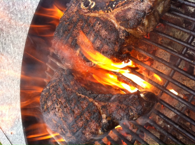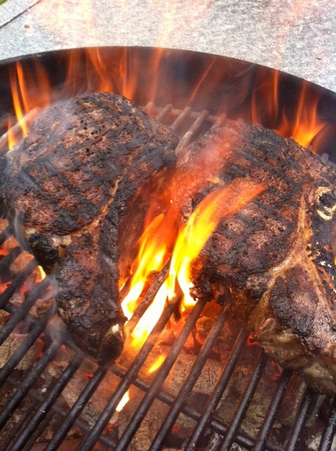 Aged 21 days … we must be in carnivore heaven!! My local butcher opened a whole cryovaced loin, cut it to my size specs … two-inch-two-pounders, and let me choose the best of the three he cut!! Aren’t I special, lol? That’s some serious danistrulytheman love!! Not gonna be too descripitve today, let the pics do the talking … oh, sorry no butcher wrap raw steaks either … was working in the kitchen, completely slipped my mind. I served it with French Blue Cheese, and grilled ciabatta garlic bread (no pics of that either … my bad)!!