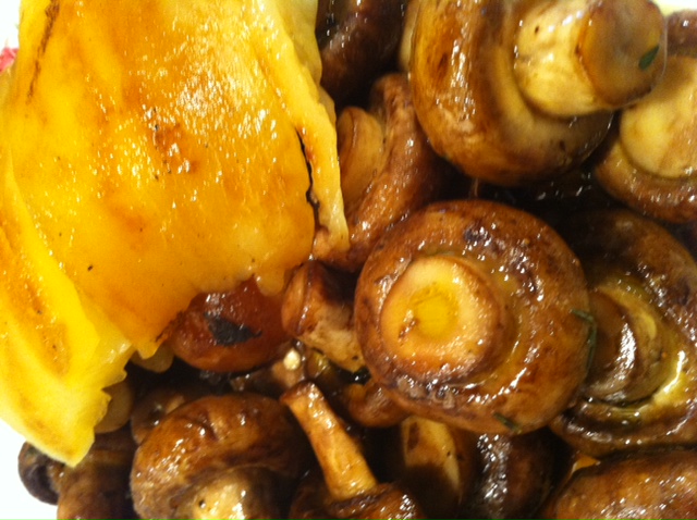 Cremini mushrooms, and roasted Sweet Hungarian Peppers (wish I took pics of the blackened peppers before I scraped off the skin, damn … looked fucking awesome!!) …