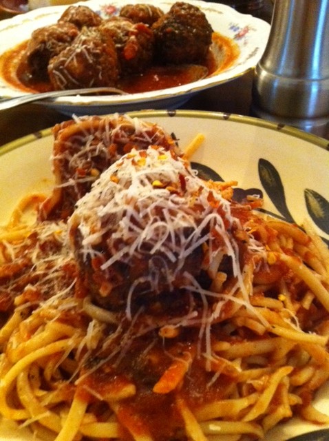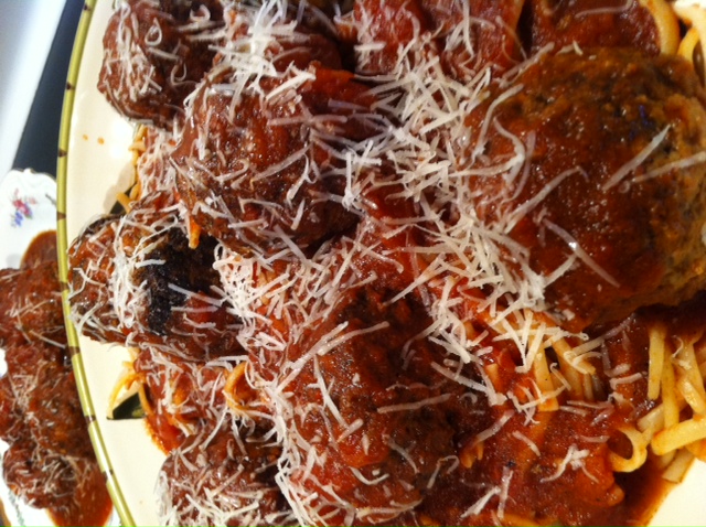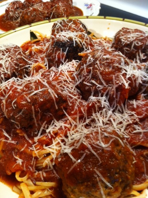 Ain’t gonna share many words with this one, will let the pics do the talking!! That’s my good man Morretti’s homemade Mason jarred tomato sauce. Added Cirio fillets for contrasting funky-chunky texture pizzazz!! Pasta is from Williams-Sonoma, a 500g (1lb.) dried pasta package of, yeah shit’s CRAZY expensive … to put it into perspective you can buy the same amount on sale here (obviously not the same quality), for 69¢ … who’s the big dummy now, lol!! Cast iron plate crusted meatballs done on my Weber, almost giving a deep fried effect. Note the purposely darkened meatballs lose-their-hue when soaked&slowly-simmered in sauce. Umm what else, Ace Bakery rosemary focaccia, Pecorino Romano … and the prerequisite glasses of Remole!! Goodbye summer, hello fall … a great reason & reintroduction for a stick-to-yer-ribs meal with my Tiffany K. … call it danistrulytheman’s-exorbitantly-expensive-spaghetti AND meatballs (my OWN recipe btw), lol!! Geez, MORE words, plus SO many pics (10), if this post don’t illicit a response? … pshaw, I give up!!