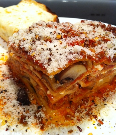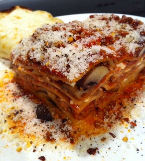 Musta been the incessant criticism, poking fun from Tiffany K. … she was somewhat relentless with it too … prompted me to include updated pics, lol!! Do I have a complex or what, lol? She was questioning the lone wolf mushroom sitting atop the lasagna … I kinda liked the presentation. Hey, voice yer thoughts in the comment box on my blog I told her!! Nobody has special privileges, personally discussing content, danistrulytheman’s intent!! Oh yeah … today’s version included cheesy ooey-gooey garlic buns too … hey, I’m only human, lol!!