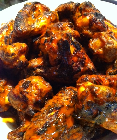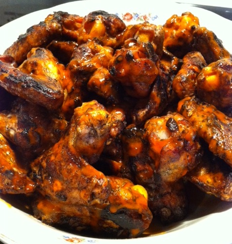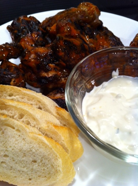 Bought a shitload of these beauties at my fave Sobey’s *eyes rolling* yesterday … air-chilled chicken wings!! Prompted by promising weather … figured why not one-last-kick-at-the-bbq-can?? Grilled ’em & glazed ’em with hot buffalo wing sauce!! Served with thinly sliced crusty bread and my home-made (secret recipe btw, lol … shhhhhh) blue cheese sauce … and LOTSA beer … let me vehemently say … life don’t get NO better!! 😉