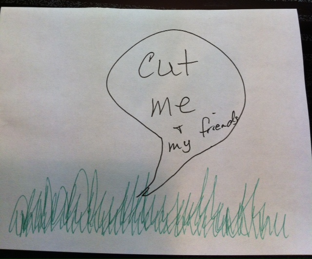 And ’cause it ain’t is why I did, lol!! Left me a reminder note (hate those btw) to mow the lawn a final time … was busy, and not in the mood so I quickly jettisoned it into the trash can. ‘Sides her blades of grass looked like shark fins, lol. Woke up this morning to a much better one … notice the green ink … nice touch Tiff, lol!!