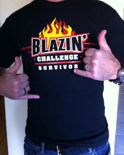 I knew I’d be ordering more wings after the Blazin’ Challenge, was thinking ten … which Rochelle Rochelle said I could split, so figured 5 Wild/5 Hot, but held off placing the order until I first completed the challenge … ‘ncase the residual heat woulda been too much to take. Afterwards said “fuck it” … ordered fifteen … AND ALL Blazin’, lol!! It’s as if I did the challenge two and a half times, lol … twentyfuckingfiveblazin’ wings … danistrulythemandontplayhalfassed!! What can I say, love, love my heat (onion rings in the background also were great) … don’t these saucy bad-boys look fucking deadly? …