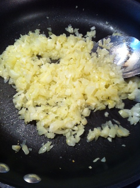 First step is to finely chop onion, mince garlic and then sweat them in a fry-pan till translucent. The point of this step is to not have raw tasting onion and garlic in the meatballs. Oh, and be sure to let it cool down before adding to the meat mixture …