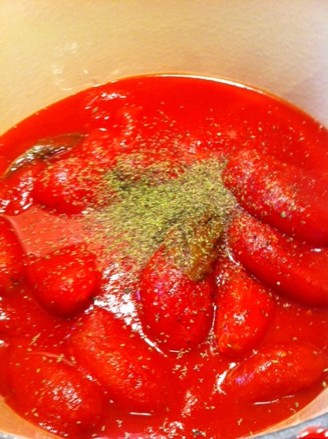 With that done … time for the sauce!! I use premium Italian canned (2 cans for this recipe) plum tomatoes … Pastene is def one of the better brands …