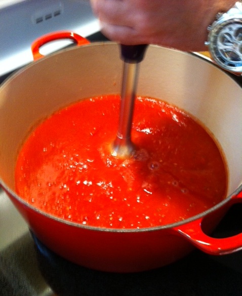 Using my handy-dandy-danistrulytheman KitchenAid boat motor … done right in the pot, right on the stove … talk about making work/clean-up easier …