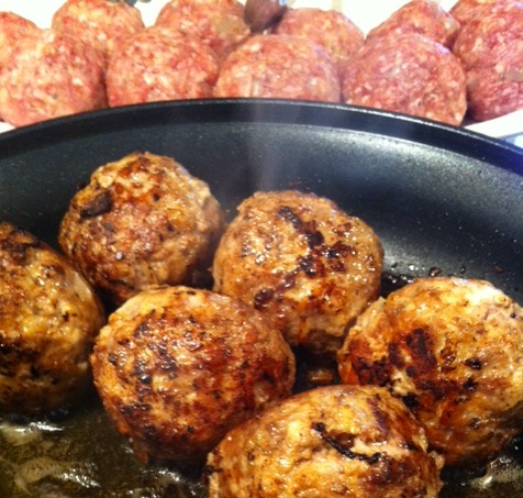 Browning the first batch of meatballs …