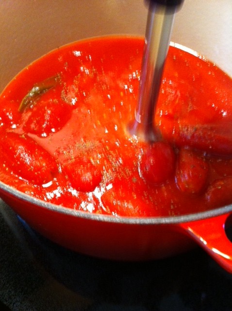 Using my handy-dandy-danistrulytheman KitchenAid boat motor … done right in the pot, right on the stove … talk about making work/clean-up easier …