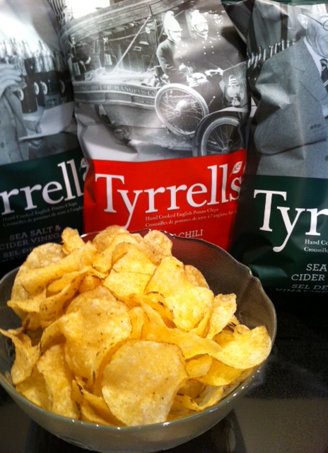 Specifically and intentionally titled my post what I did ’cause they’re from England (and if you have to ask … well PLEASE don’t, lol). I bought these the other day while shopping at Whole Foods Market!! They weren’t on my shopping list and I seldom succumb to impulsive purchases, musta been the big beautiful display they had strategically positioned in the store, and that quirky packaging … ok, that’s my story and I’m sticking to it, lol. Never thought much of them, that I even bought them … was only later lounging watching HD boobtube that I was craving a snack and I remembered having these, why not give them a go I figured? WOW, unbelievably good. Was immediately impressed with the flavour, taste … the texture and crunch, started reading the back of the bag learning more … and became even more impressed… hand cooked … product of England … variety of potato: Lady Claire … even where they were grown: Herefordshire, I didn’t even have a clue what I paid, and mid-munching went to check my receipt that I conveniently left on the counter for referance purposes if needed (ingenious … brilliant, lol), checked the price – $2.50 … well, they ain’t cheap, but they’re VERY VERY good!! And today being a man about town, popped in for four bags more … yessir yessir!!