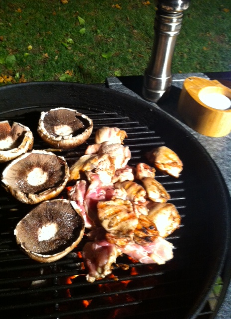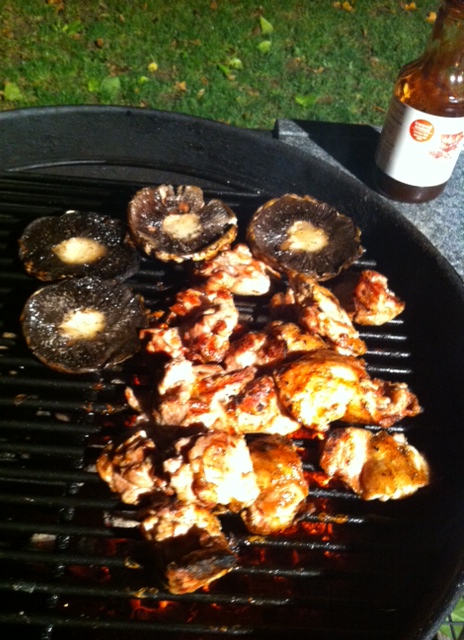 Warm days have been great, I ain’t complainin’. Just that during these days my motivation/excitement level to bbq is through the proverbial roof. But, by the time I get home after stopping and shopping for groceries, and then firing up the grill (doing some prep work while I wait) … day suddenly disappears into night. Temps drop quickly too – maybe just appears that way as I’m special occasion/celebrating drinking my frosty Creemore, lol. Here’s a few pics; two strip steaks (rubbed liberally with garlic salt, cracked black pepper, and my secret – Barberian’s Steak Seasoning), and four Mexican style sausages courtesy my local Fortinos … enjoy y’all!!