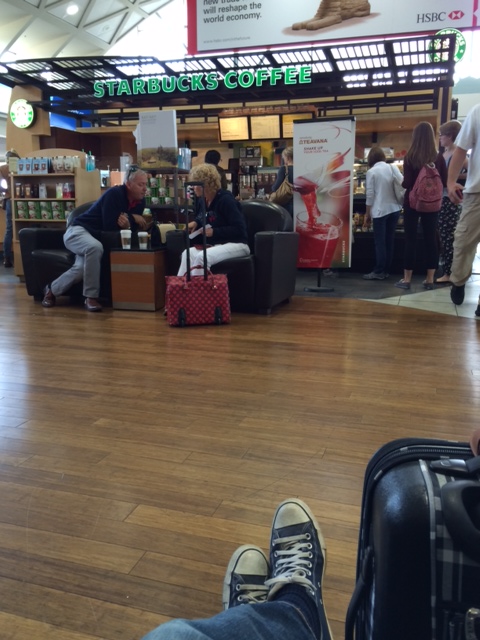 caramel macchiato frappuccino and cool clouds at 37,000 feet