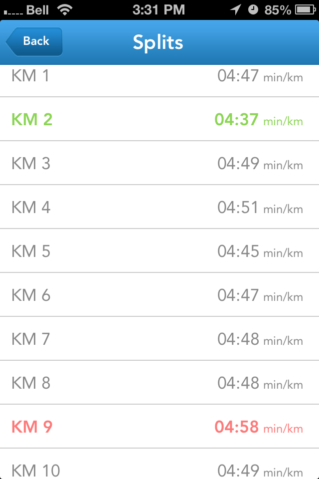 I’m proud that I was under 5 minutes on every single kilometer split … in fact, I was very, very consistent throughout – my slowest (KM 9) was only 10 seconds off pace … I think I was reserving energy while waiting for the 45 minute audio cue, leaving something in the tank for the final surge … OH, and also (forgot to mention) … I’ve been going out nightly with Tiff for her 5.3 km walks … and lemme tell y’all they ain’t exactly easy, they take a toll on my body as well. Lately, I’ve been a 12 hour run/walk cycle … like clockwork!