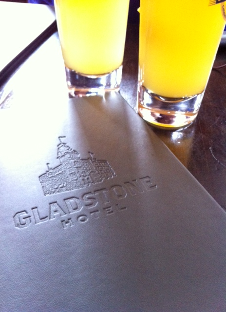 Once we became aware, we decided early yesterday morning to go to The Gladstone Hotel (#3) … their burgers sounded great, plus we were gonna be nearby – was a win win!! OMG, what a beautiful café … so relaxing, you def don’t wanna rush … ya wanna unwind soaking in the atmosphere, the company, just chillin’ ‘n veggin’!! It was here (after we ordered) that we talked about, came up with the idea of having our burger day … too bad it wasn’t planned earlier, otherwise we would have done it slightly differently … we would been smarter ’bout ‘pproaching it!!