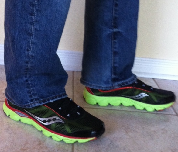 Needing new gear for my feet, went with zero drop … the latest technological advancement for runners. And there’s plenty of articles with differing points of view … all I know personally, it was a no-brainer … since I didn’t have a runner’s background, I wouldn’t have to transition to zero drop, it’s been my natural running gait all along. The running I’ve been doing for the past couple of months have been in my flat shit shoes … minimalist is my middle name. And, I can tell you after a quick trial run on the street last night, I absolutely LOVE LOVE them!! Check ’em out … my brand spanking new sweet Saucony Virratas in my civvies … Thanks for the early-birdieTiff!!